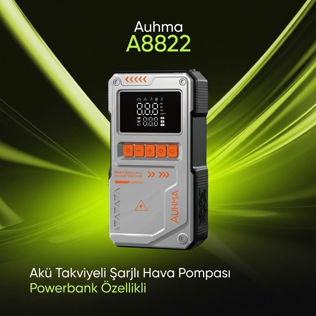 UHMA A8822, modern sürücülerin tüm acil durum ihtiyaçlarını tek bir cihazda toplayan 4'ü 1 arada bir teknoloji harikasıdır. Güçlü bir akü takviye cihazı (Jump Starter), yüksek hassasiyetli bir dijital hava pompası, yüksek kapasiteli bir powerbank ve çok modlu bir güvenlik fenerini birleştiren bu ürün, kompakt yapısıyla torpido gözünüze sığacak kadar portatiftir.
