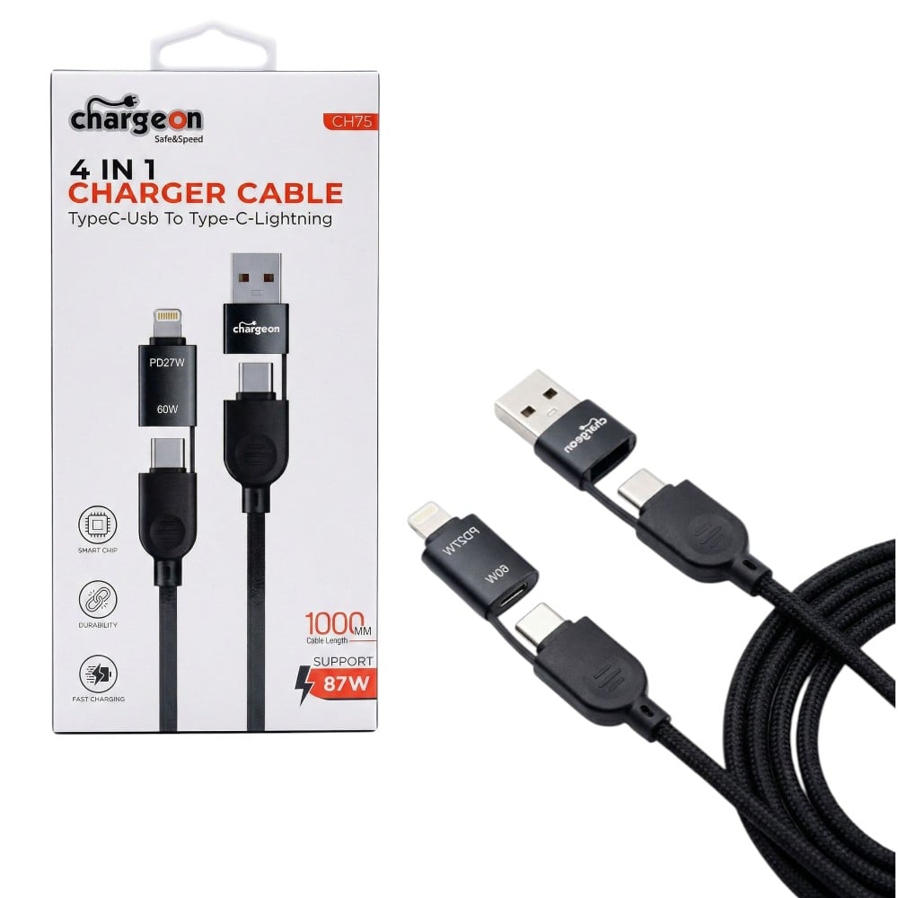 Chargeon 4in1 Type-c to USB + Type-c to Lightning 87W Hızlı Şarj Kablosu - 1Metre