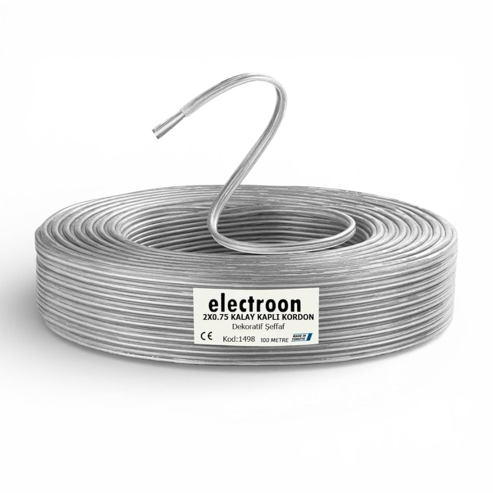 electroon 1498 2x0.75mm Çift Damar 15Telli Kalaylı Montaj Kablosu 100mt Şeffaf