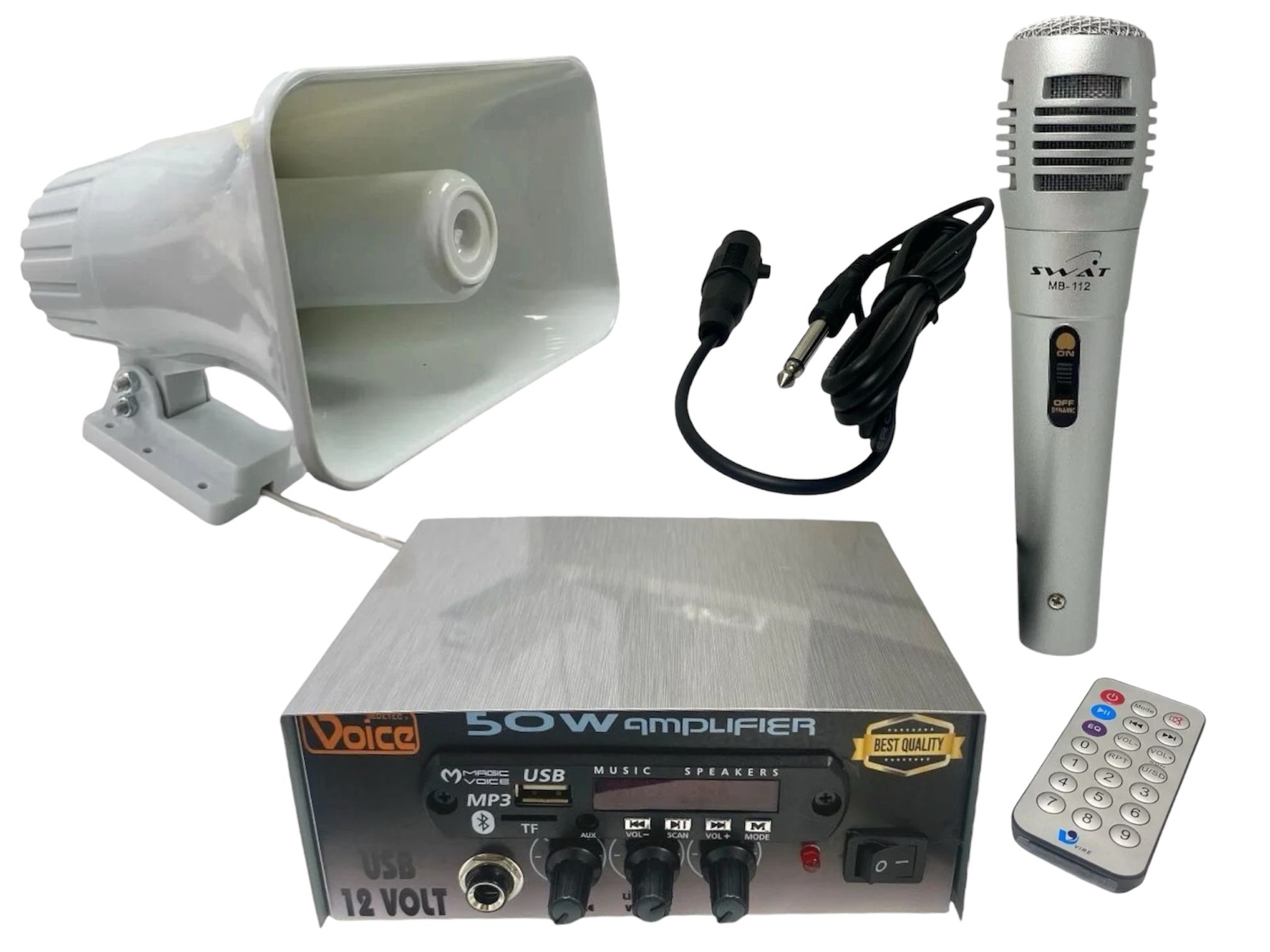 electroon Pazarcı Ses Sistemi Takım Set 12V USB Amfi+50W Horn Hoparlör+Mikrofon