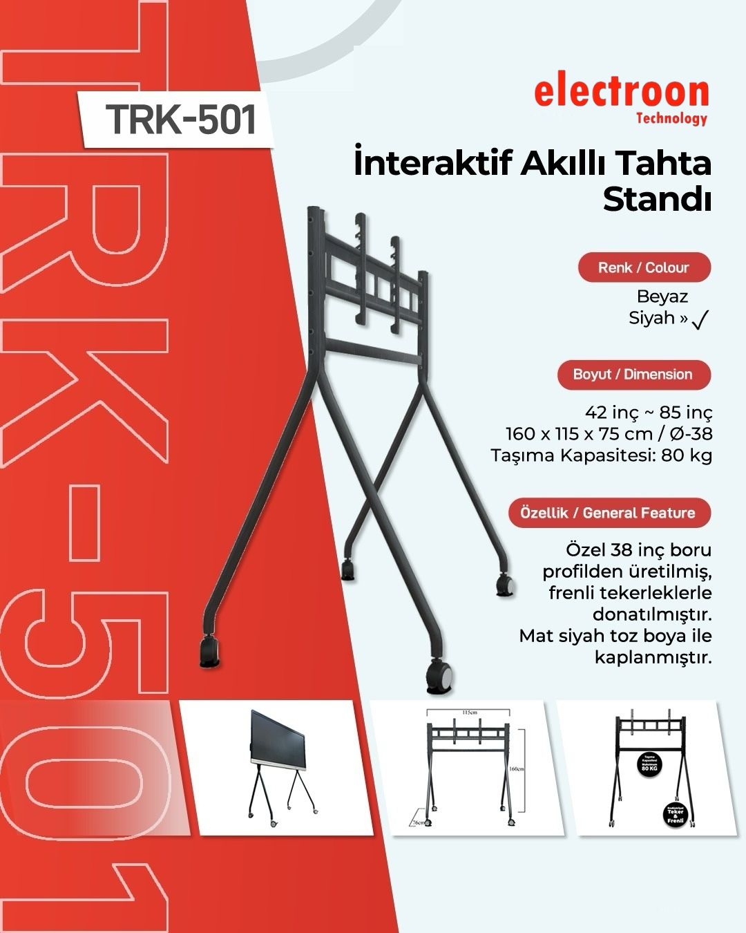 electroon TRK-501A Tekerlekli Universal 42''-85'' LCD-LED TV Akıllı Tahta Standı