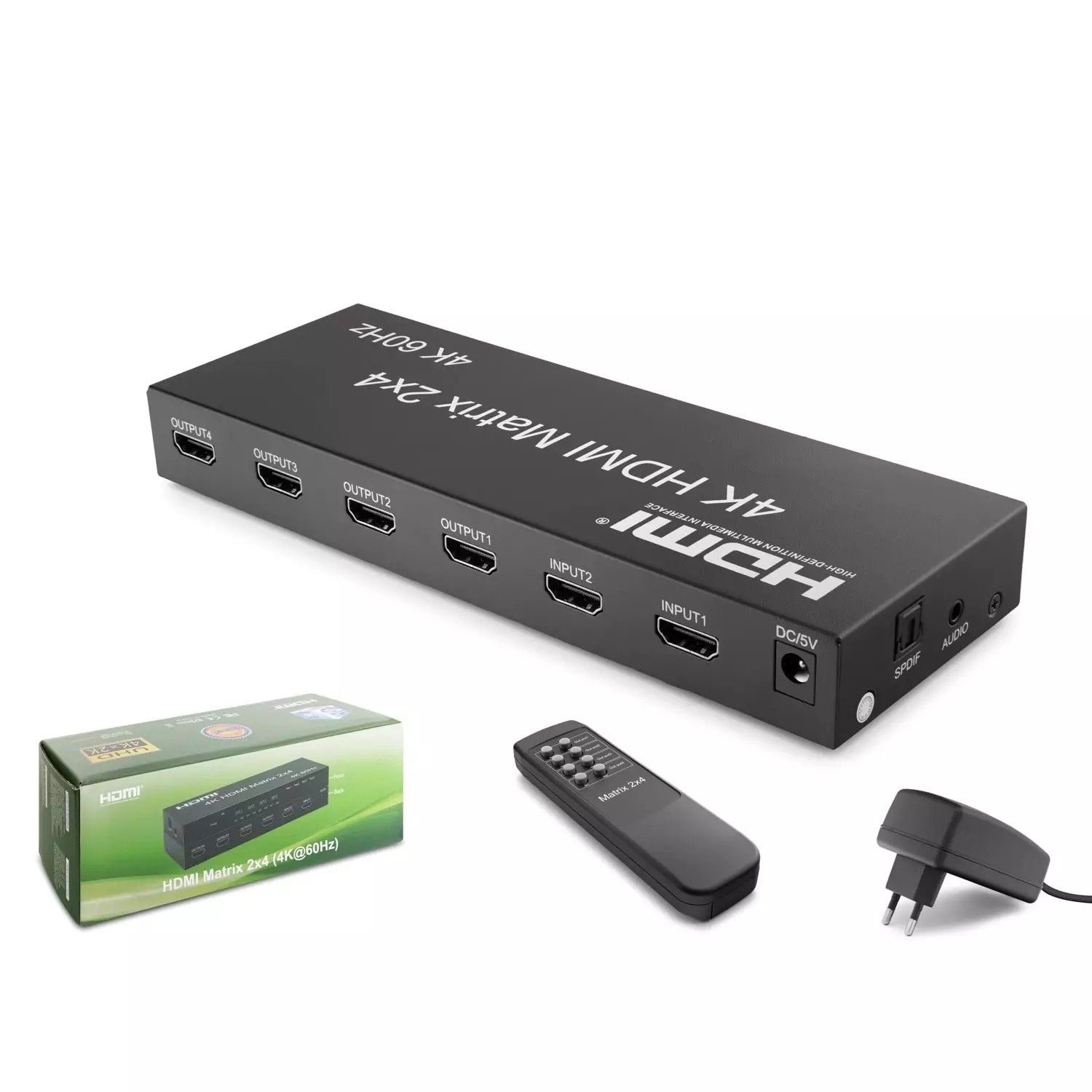 fiber optik veya stereo kulaklık çıkışı ile. Matris, dört HDMI cihazının bağlanmasına izin verir.