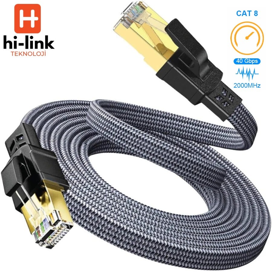 hi-link 5 Metre Flat Örgülü Cat8 Ethernet Kablo