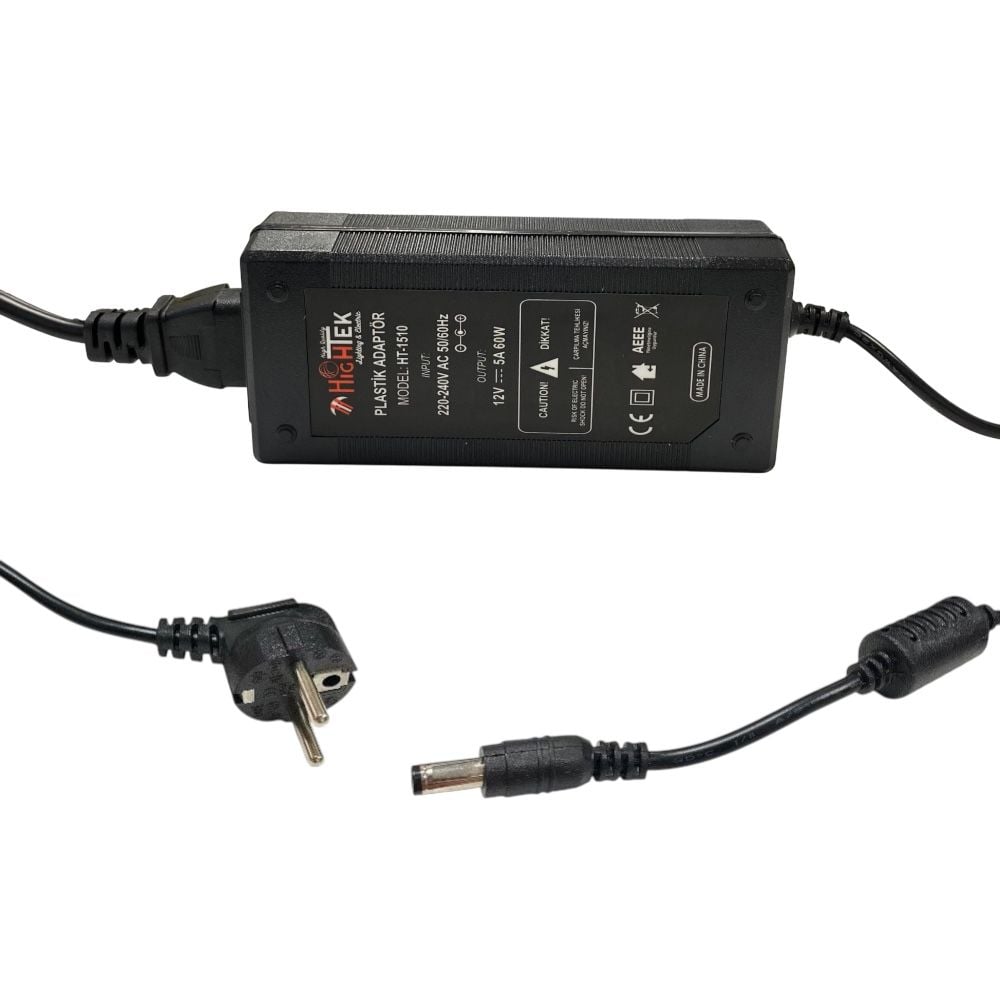 Hightek 12Volt 5Amper Plastik Adaptör 5.5x2.5mm Jak Fişli