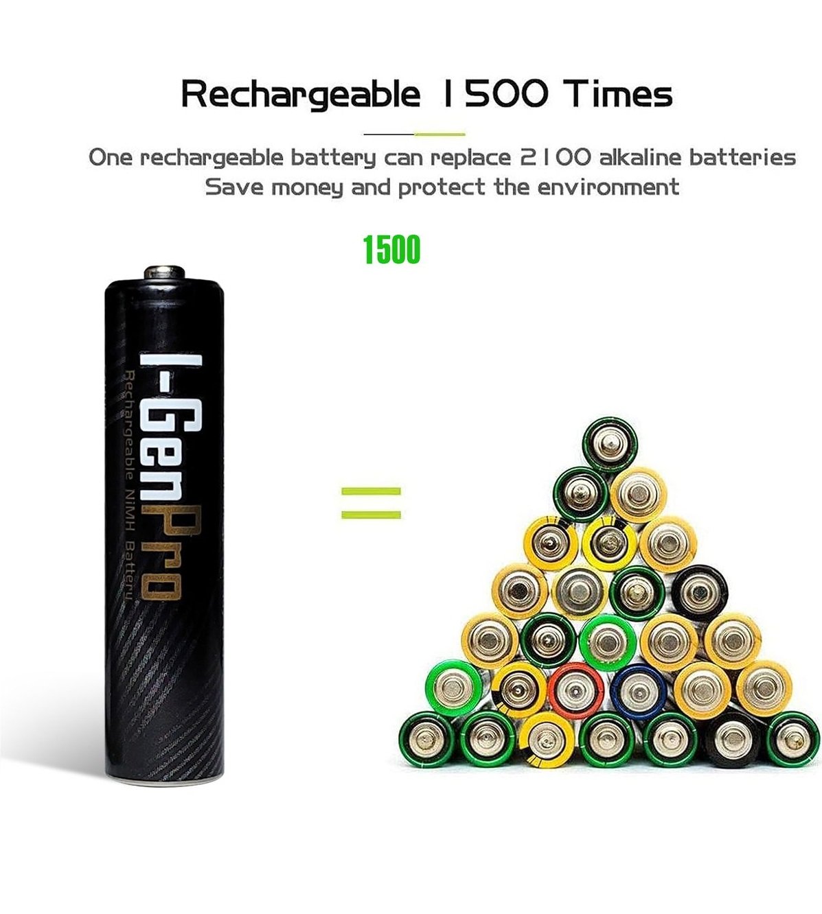 Şarj Edilebilir NiMH Teknolojisi: NiMH (Nikel Metal Hibrid) teknolojiye sahip bu piller, çevre dostu olup, uzun süreli kullanım sağlar. NiMH piller, yüksek enerji verimliliği sunar ve genellikle daha fazla şarj döngüsü sağlar. Bu da cihazların daha uzun süre enerji almasına olanak tanır.
