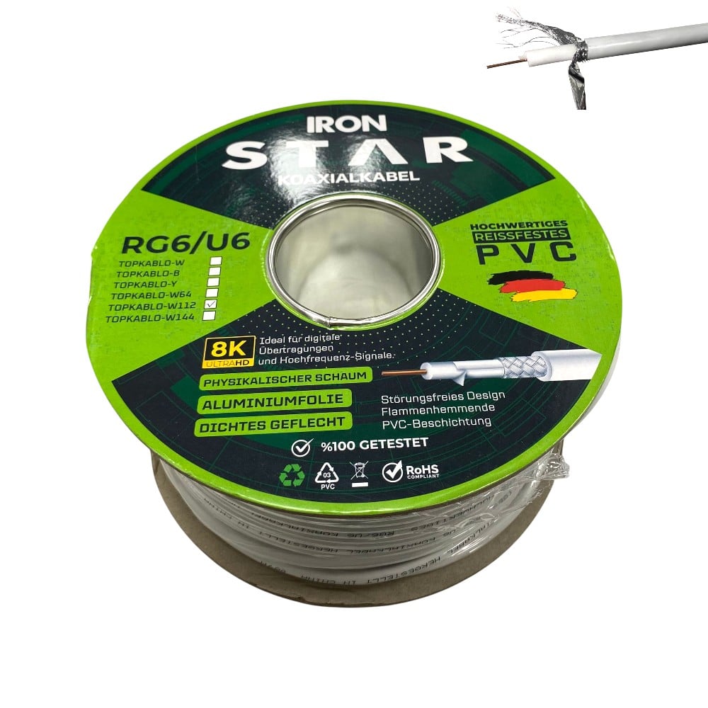 Ironstar RG6U6 Beyaz Anten Kablosu 100Metre / 112Tel
