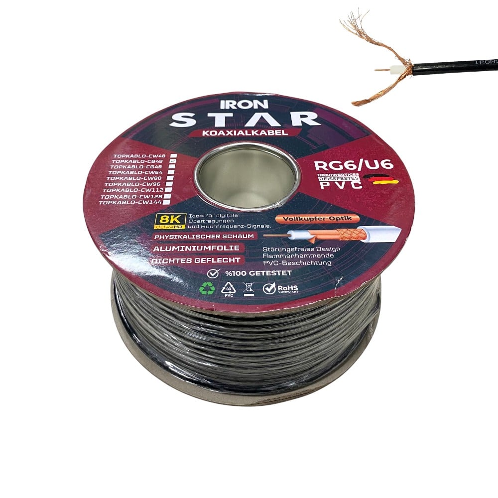 Ironstar RG6U6 Siyah Anten Kablosu 100Metre Gold 48Tel Bakır Kaplama