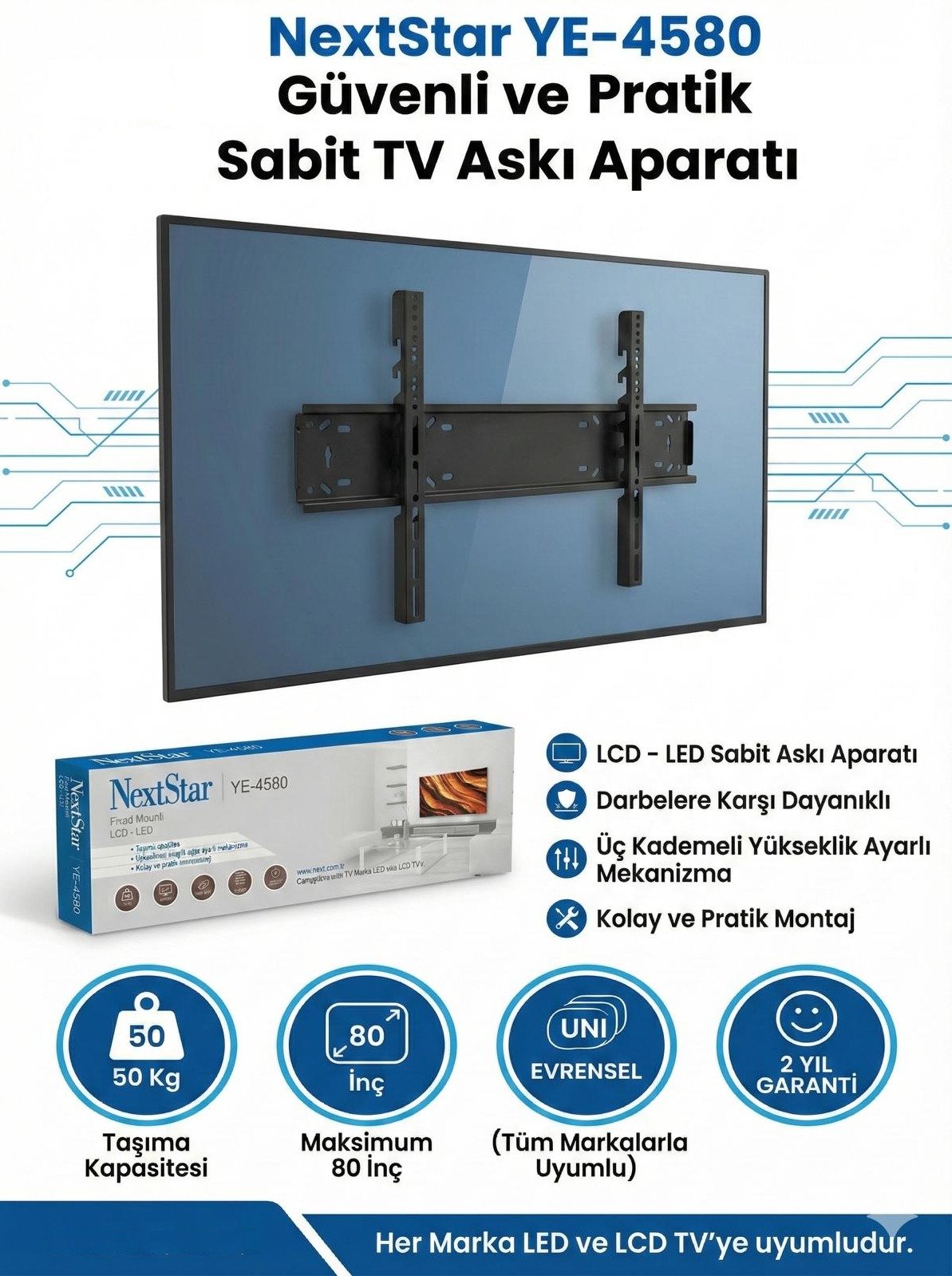 NextStar YE-4580 45-80'' Sabit LCD LED TV Askı Aparatı - Su terazili