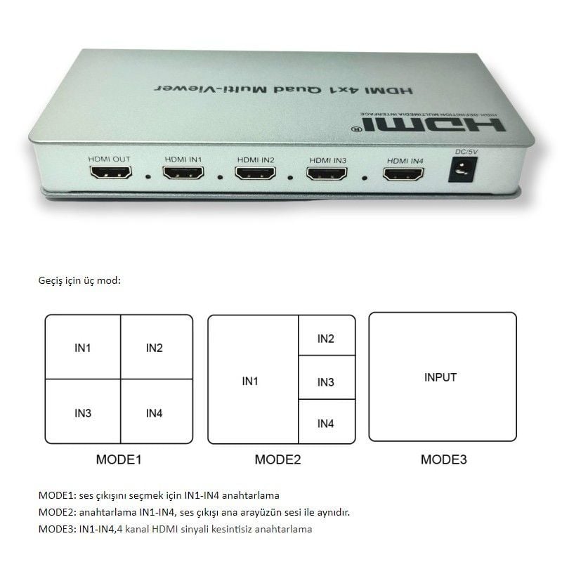 4 HDMI Görüntü Kaynağını Tek ekranda 4 Bölmeli olarak gösterir.