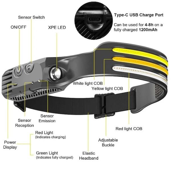 Powerdex PD-1172 Profesyonel Sensörlü Esnek Cob Ledli Kafa Lambası