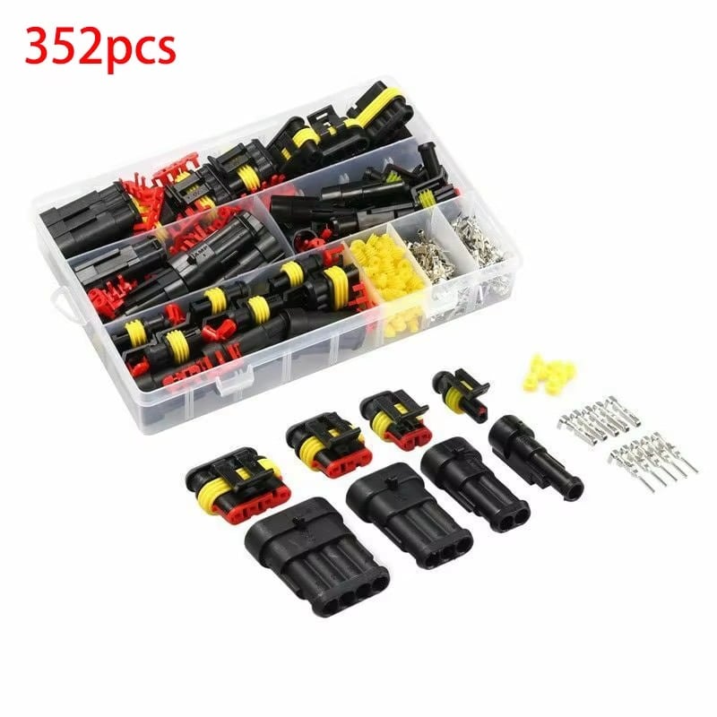 352 Parça Su Geçirmez Konnektör Seti.Toz geçirmez, su geçirmez konnektörler. Motosiklet scooter, araba, kamyon, arazi aracı, karavan, deniz, jet ski, tekneler, vb. araçlarda veya elektrikli cihazlarda kullanımı uygundur.