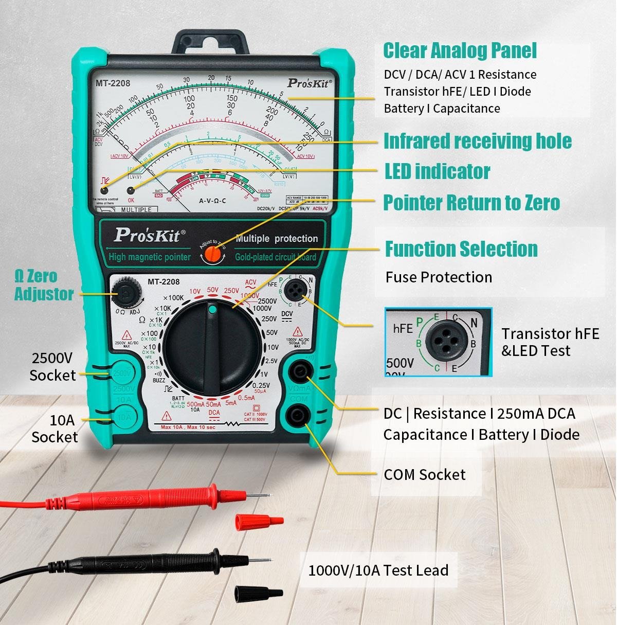 Proskit MT-2208 Korumalı Analog Multimetre Ölçü Aleti
