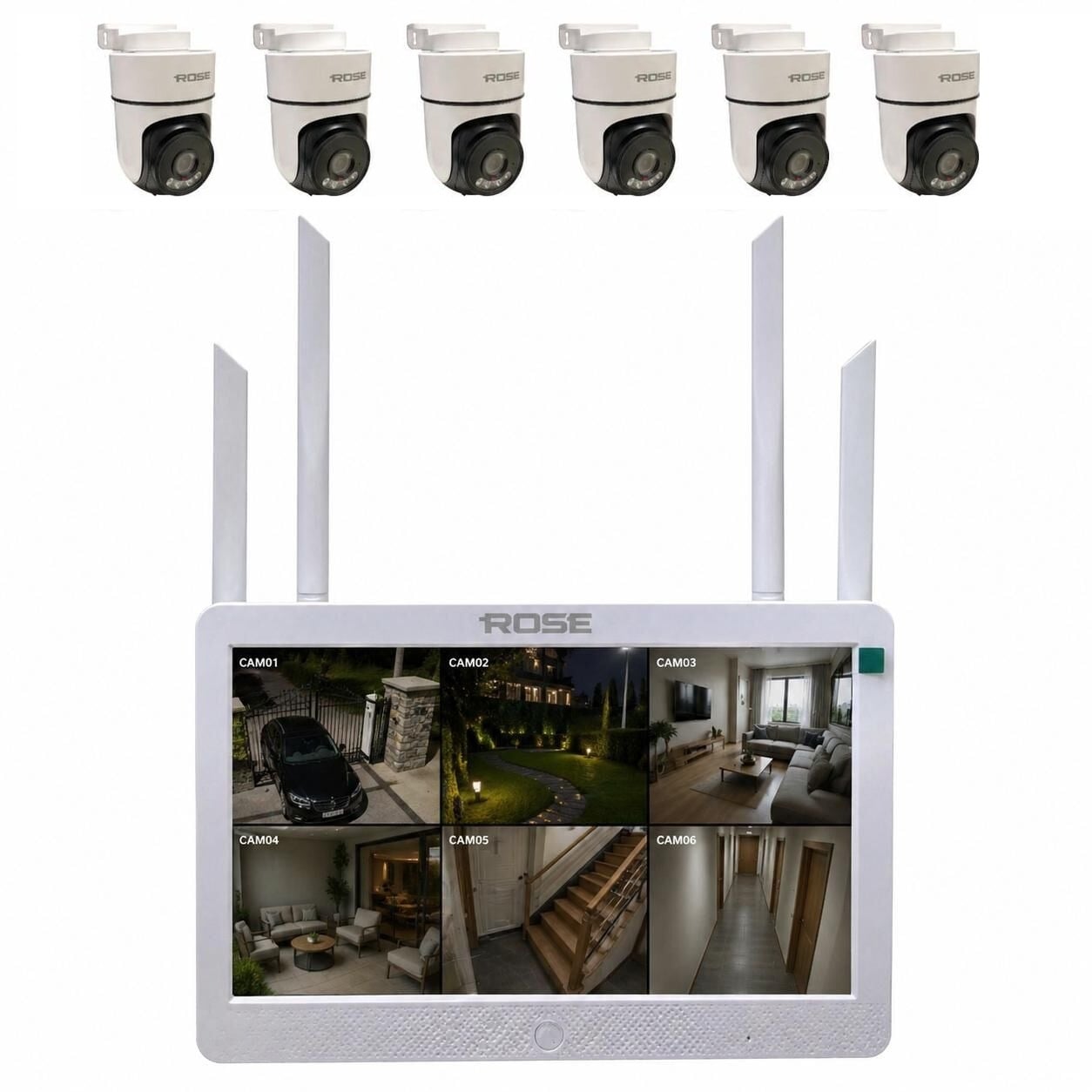 Rose 6 PTZ Kameralı 10.1'' Lcd Ekranlı Sesli Kablosuz Wifi Kamera Seti