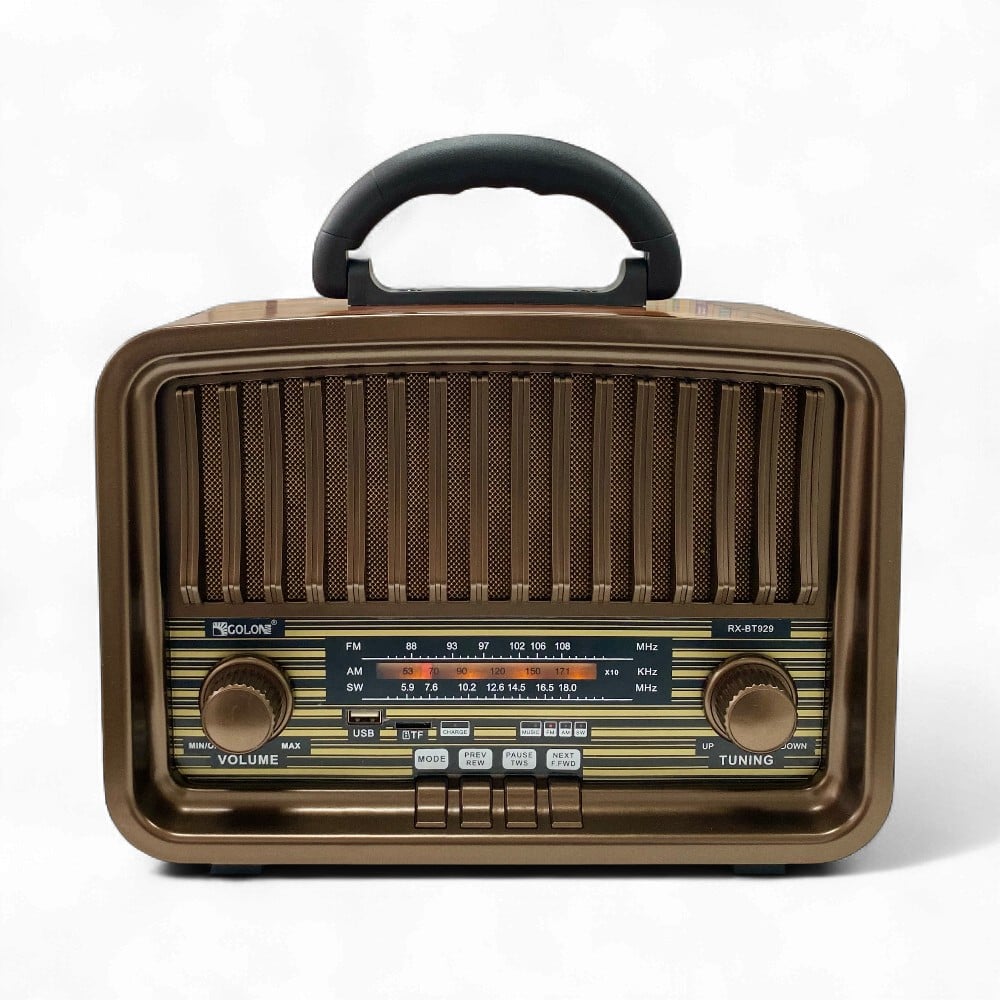 Bu retro vintage taşınabilir radyo, USB/TF müzik çalar ve Bluetooth bağlantısıyla FM/AM/SW bantlarına sahiptir.