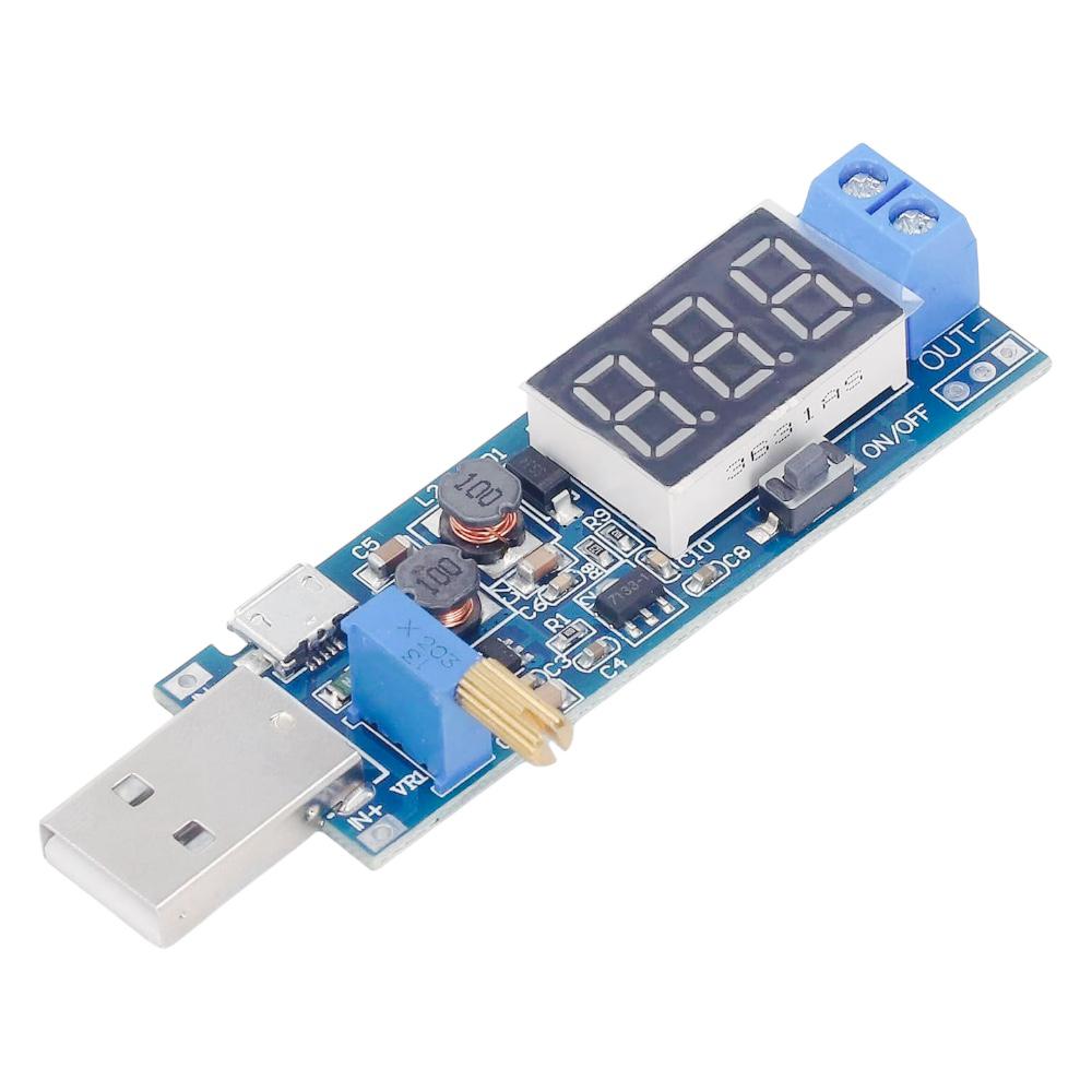 USB ile çalışan USB boost/buck güç kaynağı modülü, gerekli gerilimi elde etmek için potansiyometreyi ayarlamak gereklidir.