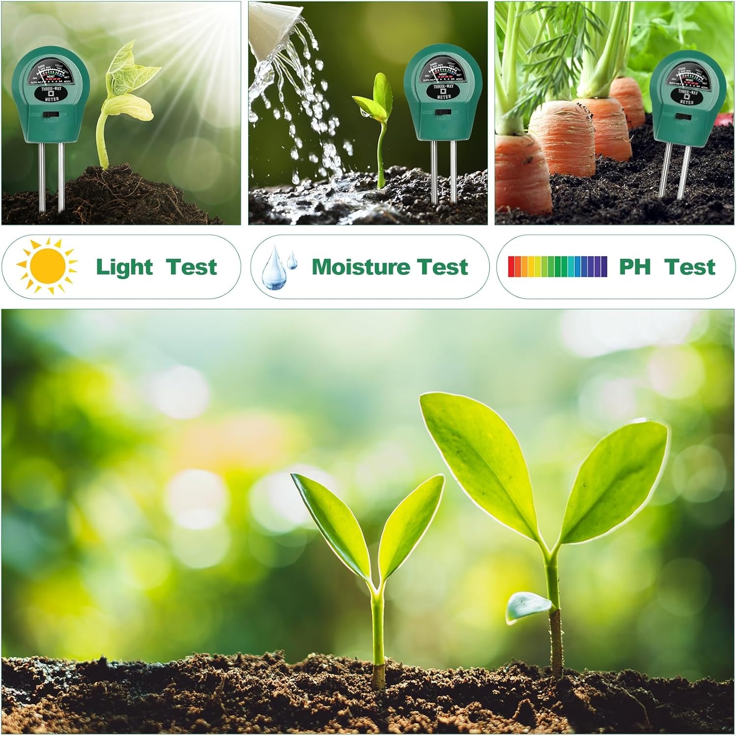 -KULLANIMI KOLAY Toprak test cihazımız pil veya güç gerektirmez, değeri okumak için sadece ölçüm cihazını toprağa bastırmanız yeterlidir.